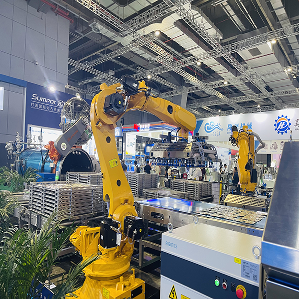 El sistema de retorta automatizado utiliza robots de brazos mecánicos para manejar un patrón de contenedores de bolsas sin procesar y luego usa robots para organizar patrones completos de bolsas en bandejas autoapilables a una velocidad de hasta 300 bolsas/minuto. El programa informático controla el brazo robótico para completar la carga y descarga de placas antes de la esterilización y la liberación y descarga de placas después de que se completa la esterilización; todo el proceso de trabajo no requiere intervención manual y se completa automáticamente; libera fundamentalmente a los trabajadores y resuelve por completo las dificultades laborales de las empresas alimentarias. , el problema de la mano de obra cara. Ayudar a las empresas a establecer fábricas automatizadas, mejorar la eficiencia del trabajo en las fábricas, mejorar los niveles de calidad del trabajo en las fábricas y ayudar a las empresas a mejorar la competitividad en el mercado.